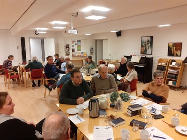 Deltagerne fik så et ark med spørgsmål om kirkelivet til overvejelse enkeltvis. Derefter diskuterede man så spørgsmålene i små grupper på fire.